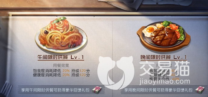 考虑到大家对游戏玩法可能没有了解透彻,活跃任务一般就是让大家体验游戏里的各种玩法,从战斗,到功能,到小游戏应有尽有,比如其中的限时美味,就是让大家自己去营地去享用午间和晚间限时供应的美食,吃了后可以增加饱食度的同时,获得一段时间的属性增益,告诉你即便游戏里再肝,不要忘了给自己的角色吃饭。