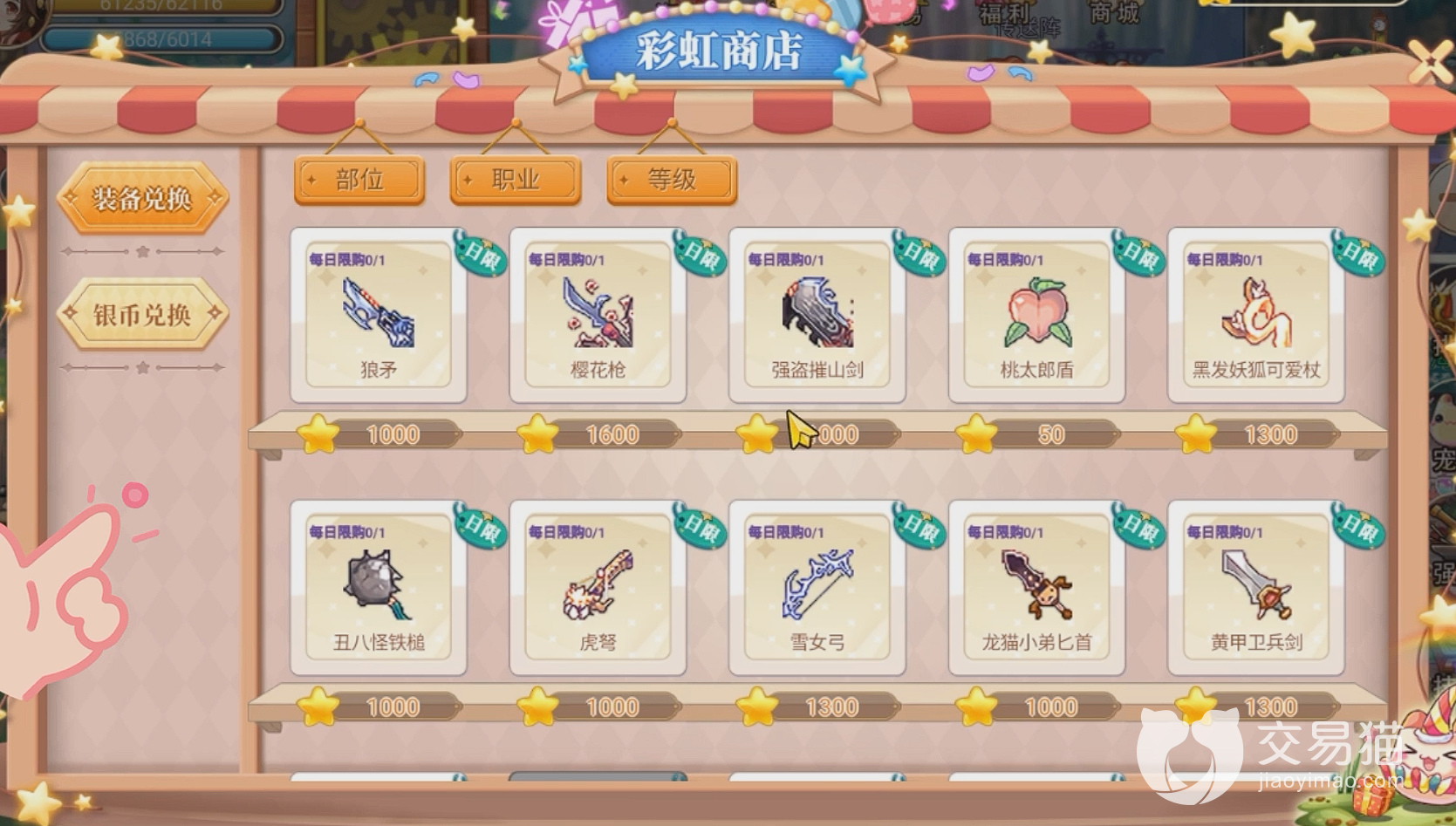 同样的分解高品质的史诗级武器或者稀有级别武器,可以额外除获星晶以外获得星币。星币可以在彩虹商店里兑换各种史诗级别武器,简而言之,如果遇到一些不喜欢的史诗级武器,可以将其分解,但获得材料的同时,也可以通过商店购买一些较为不错的武器。当然,如果自身武器不充裕的情况下,还是建议前往副本去刷取和做每日任务,获得比较好。