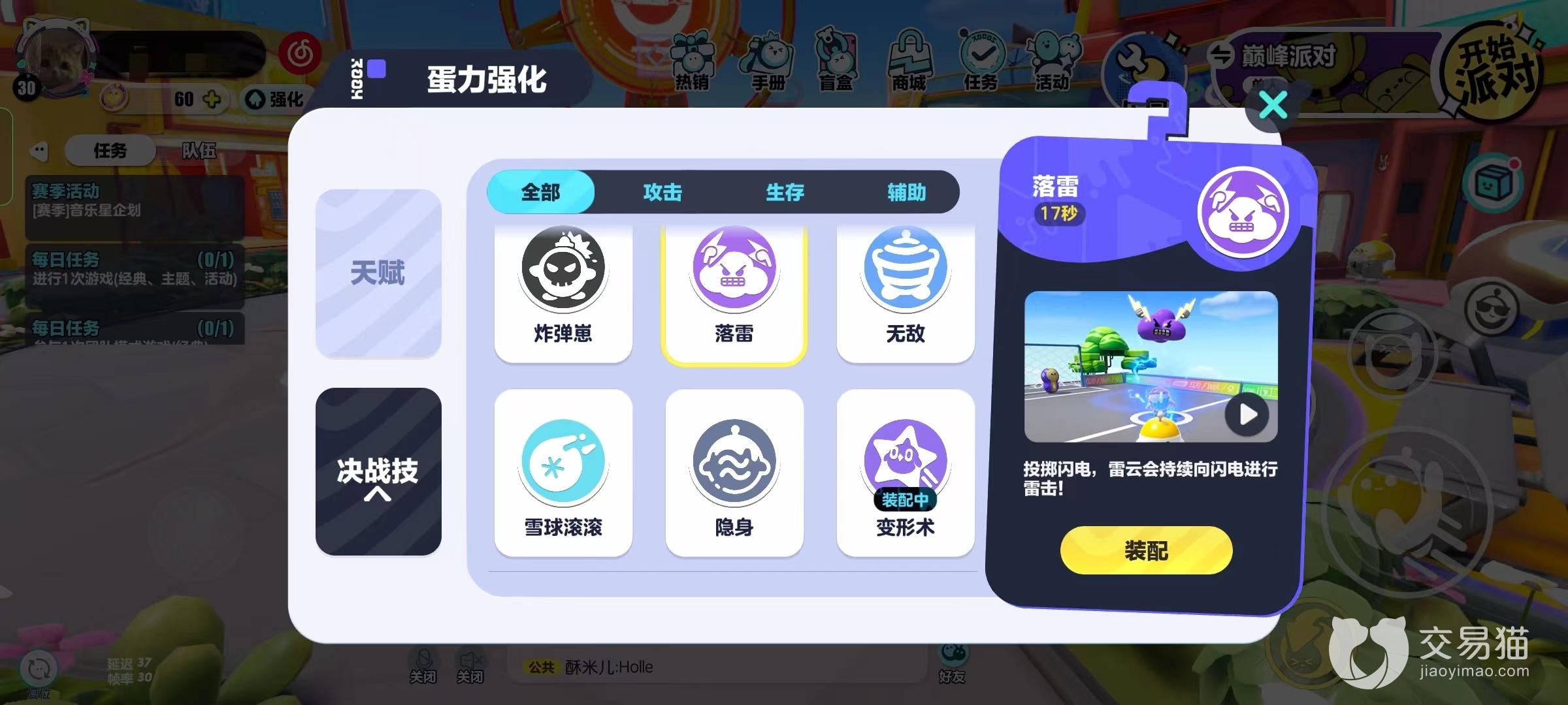 蛋仔派对这款游戏在最近这段时期可以算得上是平地一声惊雷,本身游戏的热度不高,可能是因为游戏实在有趣,吸引了一众玩家们的争相涌入。蛋仔派对游戏内每个玩家可以使用八个不同的决战技,蛋仔派对落雷就算是其中的一个,有很多小伙伴在自己的决战技中寻找才发现自己并没有这个技能,那么本期的内容就来给玩家们介绍一下落雷的获得方式,感兴趣的小伙伴一定要认真的看完本期的内容哦!