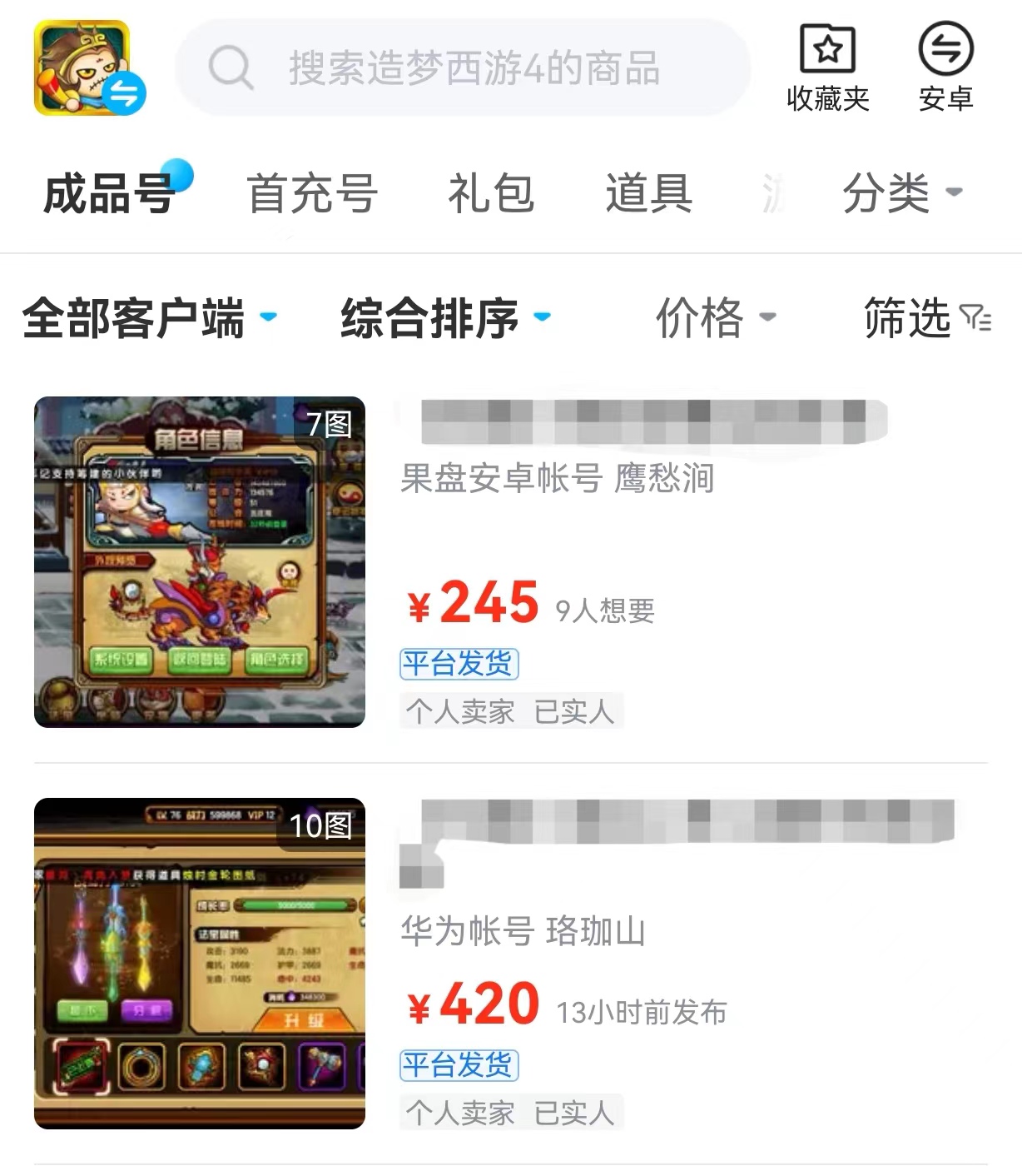 造梦西游4手游是好几款同IP游戏的续作,也在原先的游戏上增加了更多新玩法,玩家通过闯关打BOSS副本可以掉落各种装备、道具,可以用于提升强度,一般极品账号的练度都是全部副本通关的,如果纯靠肝得花上几年时间,这种账号价值自然也就高了。小编今天要推荐的账号交易平台就是交易猫,平台内各种游戏账号都有,成品号,初始号,充值号。大家可以在对应专区内找到符合的账号。