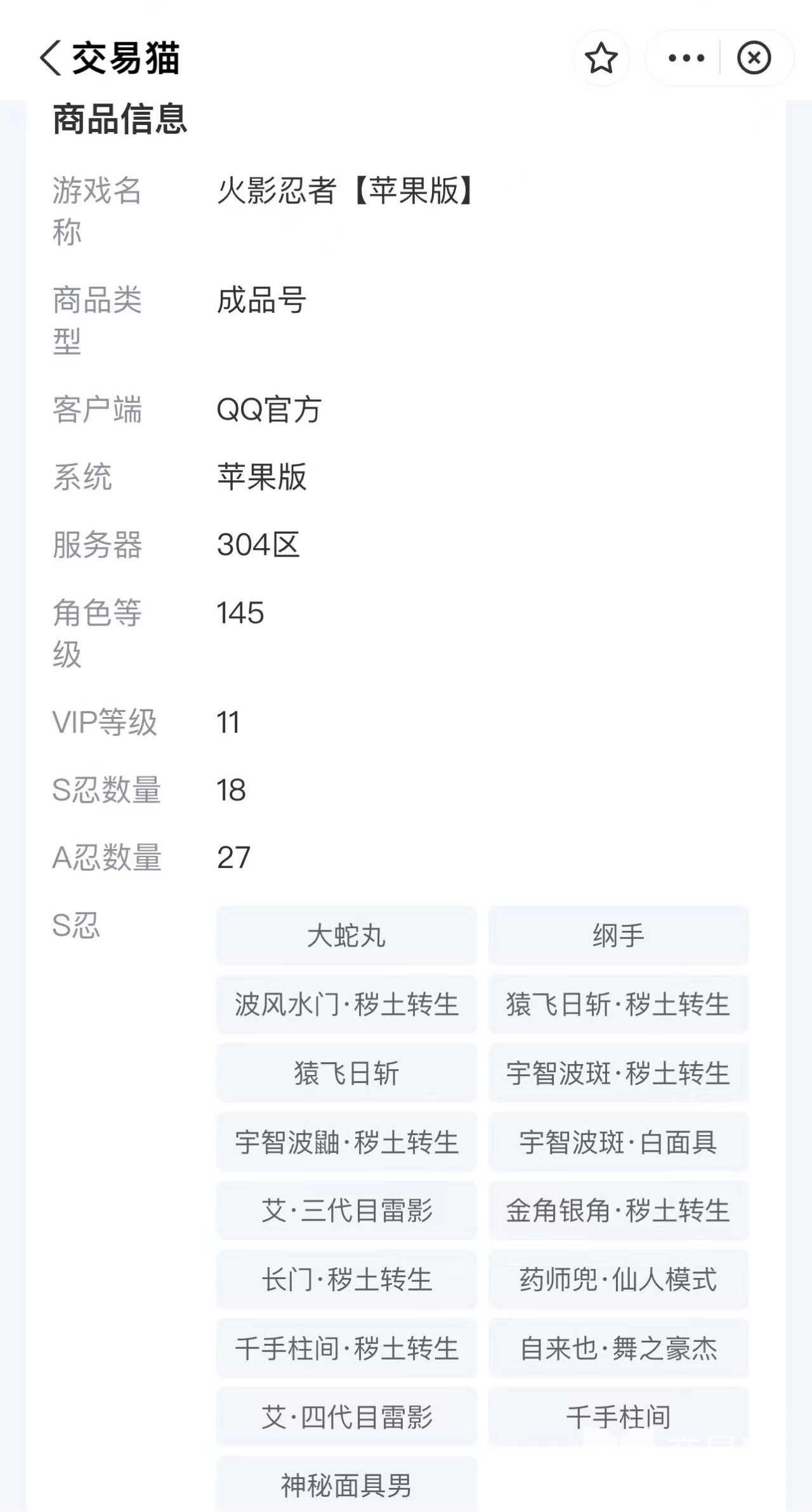 一般来说拥有S忍的火影忍者账号价格都不低,平均一个S忍大概能卖到一百块钱左右,如果你的A忍也很多的话,并且战力也很高,则可把价格上调一些。如果你的价格定好之后,就可以在交易猫里一键上架快速卖掉,告别复杂流程。