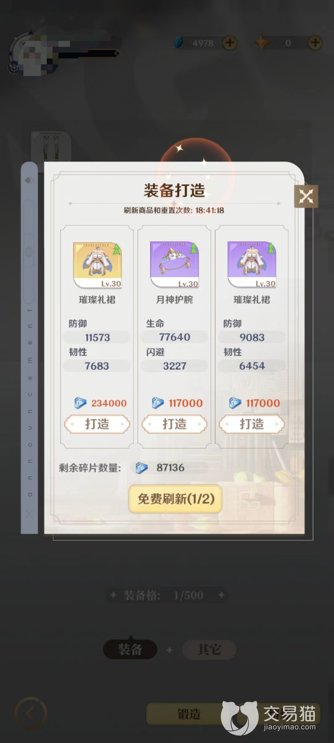 如果我们关卡卡住了,想要继续获得高级的装备就会比较难,这时我们可以通过自己锻造更高品质的装备来提升战力。