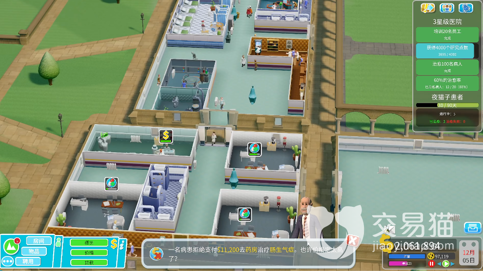 很多道具都会加声誉,不止是5级的病房很好用,在宽广的走廊上摆放一些咖啡机之类的便民机器,也可以增加部分的声誉,垃圾桶这样的小物件也是必不可少的,还有空调暖风机这种可以给病人以及医生带来满意度的物品也可以多放一点,休息室以及厕所是必备,很重要不要忘记,这些小细节单个声誉虽然加的不多,但是合起来也是很客观的数值了。