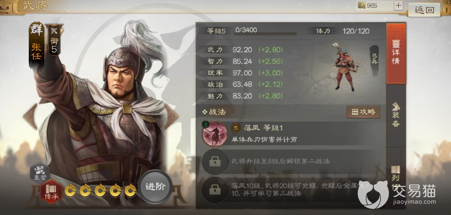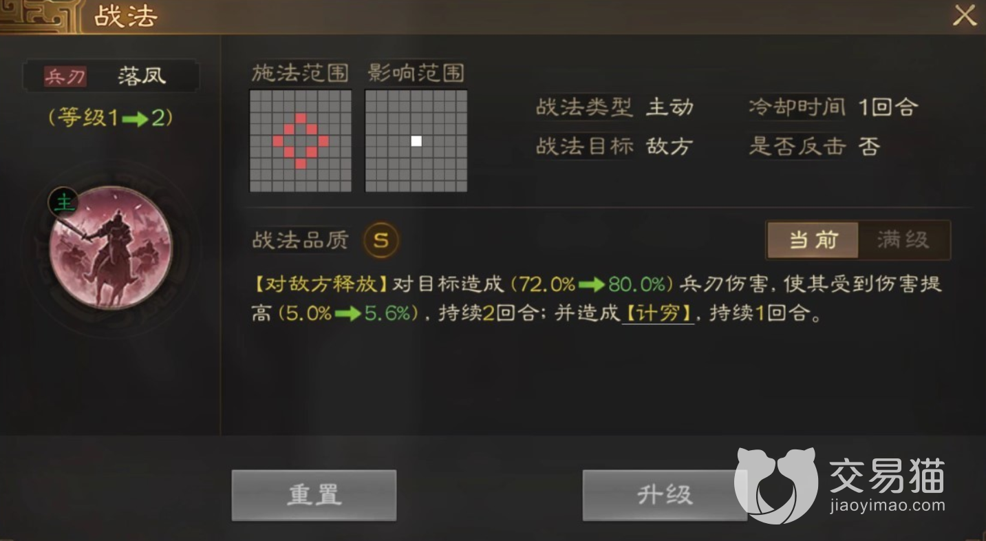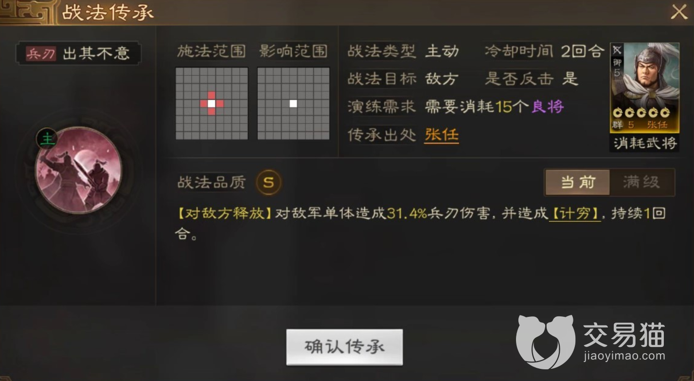 自带的技能增伤的效果非常不错,对敌人做好标记让他受到持续的debuff的影响,对于技能还有封锁的效果,对于武力不高依靠技能的角色可以说是毁灭级别的打击,学习的技能不是很强只是也有封锁的效果,可以给一些缺控制杀辅助的角色补充一下。