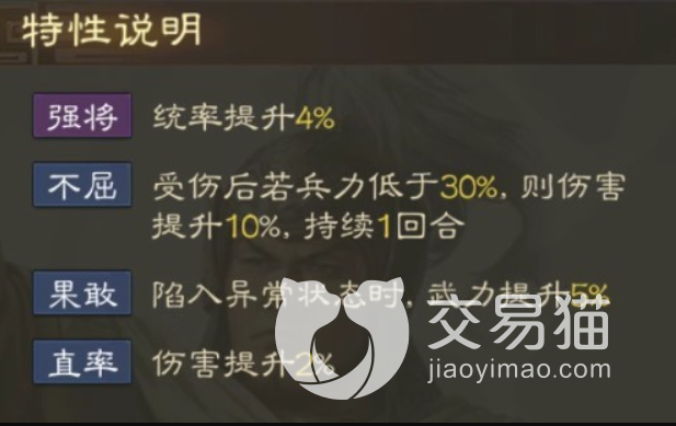 最后特性在弓兵当中还是比较的不错的,都是增加自己的生存能力,组个全弓兵的组合搭配黄忠和严这俩个角色针对敌人还是可以玩的,伤害非常的高,而且手长玩起来非常的舒服。