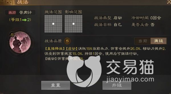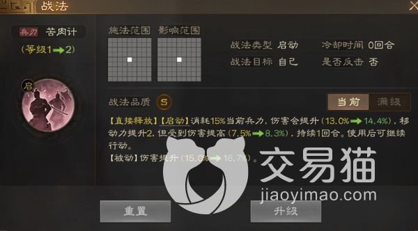 上面介绍的还只是苦肉计为两级的时候水平,若是他达到满级,他的被动效果直接可以将角色伤害提高到百分之30,消耗同样的兵力伤害也会提升到百分之26。