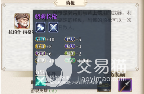 其次像长枪这类的道具,可以增加非常不俗的武力值,但需要注意的是,它首先就不是适合智力类的武将,其次它增加了移速和很多的生命护甲,那说到这里大家就应该很清楚了,这是适合骑兵的装备。