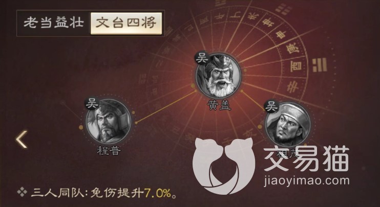 羁绊同队加成方面,与黄忠、程普、严颜组成老将同盟,获得统帅加成。与祖茂、程普同队获得免伤加成。同队加成其实不太用得上,反倒是自身特性提升不少,尤其是“火计”能提升对灼烧敌人的伤害。