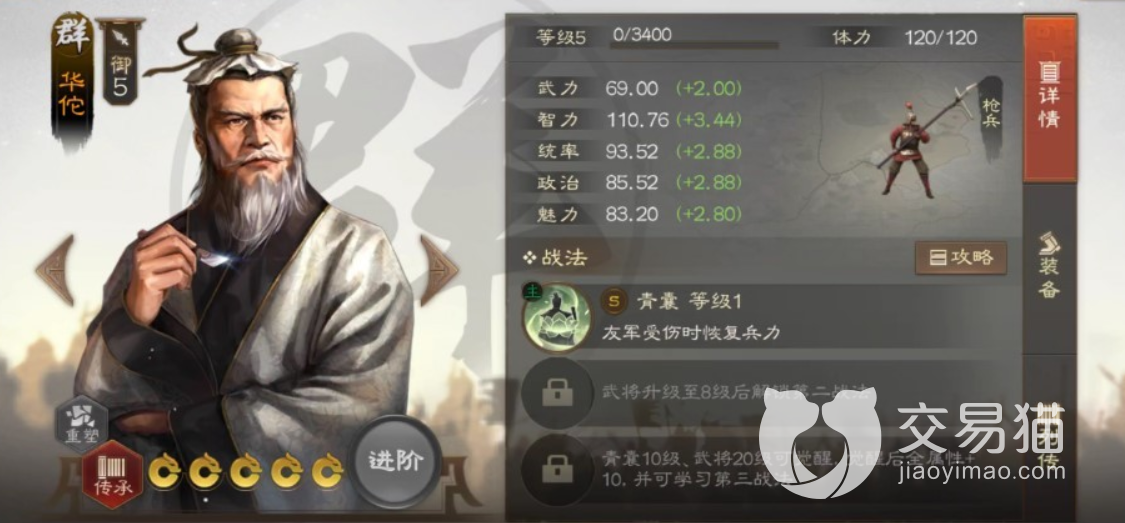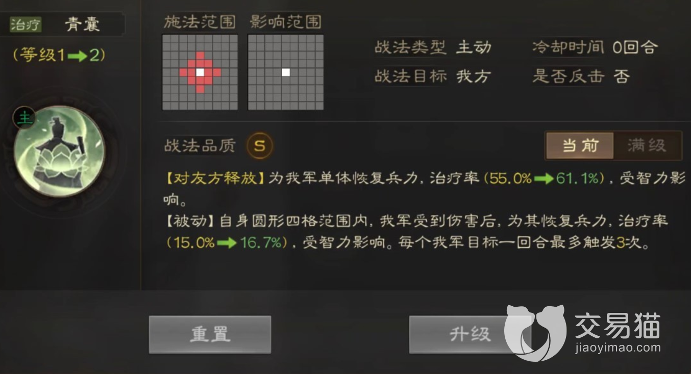 技能s级别可以为范围的队友恢复兵力,对于玩家来说不算很强,但是零冷却就很bug,每回合都能恢复范围队友,让队伍越打越强大,被动也能持续恢复,可以说是全身都是奶的存在。