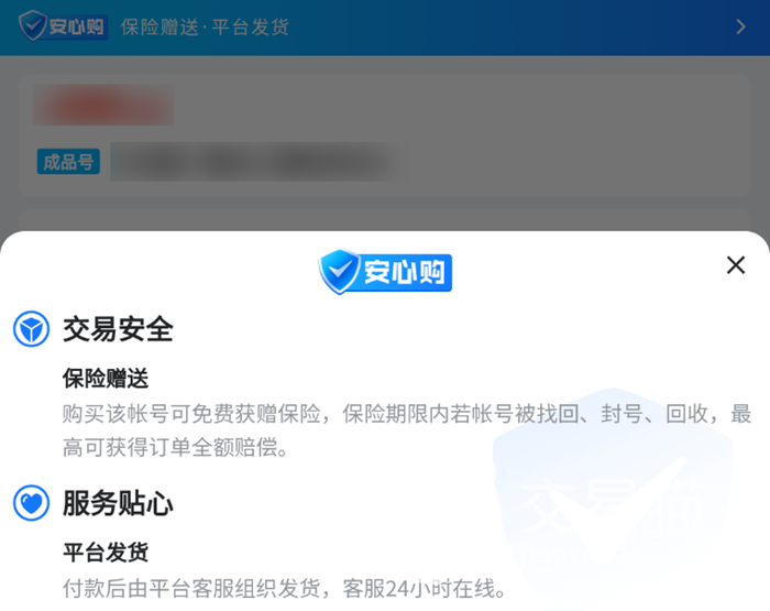 在上架商品的阶段我们可以为账号选择各种各样的保障措施,平台发货是成为诚信卖家之后可以选择的,这就不再赘述了,这里我们重点说一下保险赠送这个服务。服务对买家和账号形成了一个全方位的保障,如果卖出去的账号被封禁或者是官方回收,那么会由平台出面进行赔付。其实如果账号被找回也会进行赔付,但是找回的话是违规行为,所以大家也一定要记住在账号出售之后不要动歪心思,否则会受到严厉的惩罚哦!