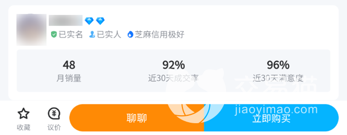 在成功发布商品之后在其详情页也是能够看到我们公开的一些信息,比如近期的成交率、销量和满意度等。最重要的是还可以显示信用评分等级以及实人认证的标识,让用户和买家对我们产生更大的信任。