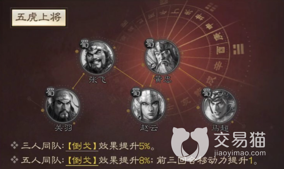 而作为五虎上将之一的赵云,当上场同时有3名五虎上将成员的时候倒戈效果能够提升5%,如果场上有5名成员的话那么效果能够提升8%,而且在前3个回合中行动能力还能够+1。