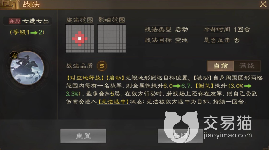 能够无视周围的地形,如果周围2格范围内有一名敌军,那么全属性能够提升,而且技能‘倒戈’也能够得到一定的提升,最重要的是这个提升是能够叠加的。当敌军行动的时候,如果战场上还有友军而自己受到攻击的话,那么在接下来的进攻中是无法被选中为攻击目标的。