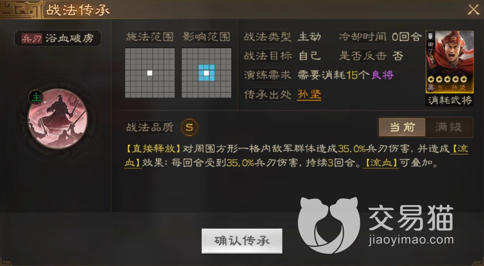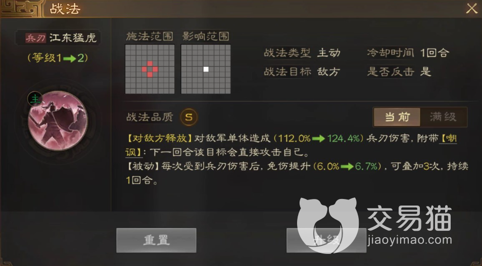 对敌军造成大量的兵刃伤害,而且战法等级越高所造成的伤害就越强大,而且攻击后还会对敌军附加‘嘲讽’效果,让敌军在下一个回合中直接攻击自己。然而孙坚的被动在每次受到攻击后能够获得一定的免伤效果,而且还可以进行叠加,而孙坚所携带的兵种为盾兵防御效果更加强大,所以在战斗的时候可以优先攻击敌军的输出阵容。