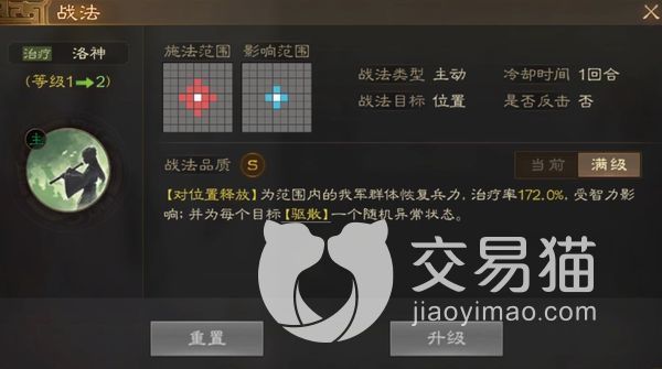 她的洛神技能效果,可以恢复我方兵力,最高还能将治疗率提高172%,并且为目标队友驱散一个随机的异常现象。