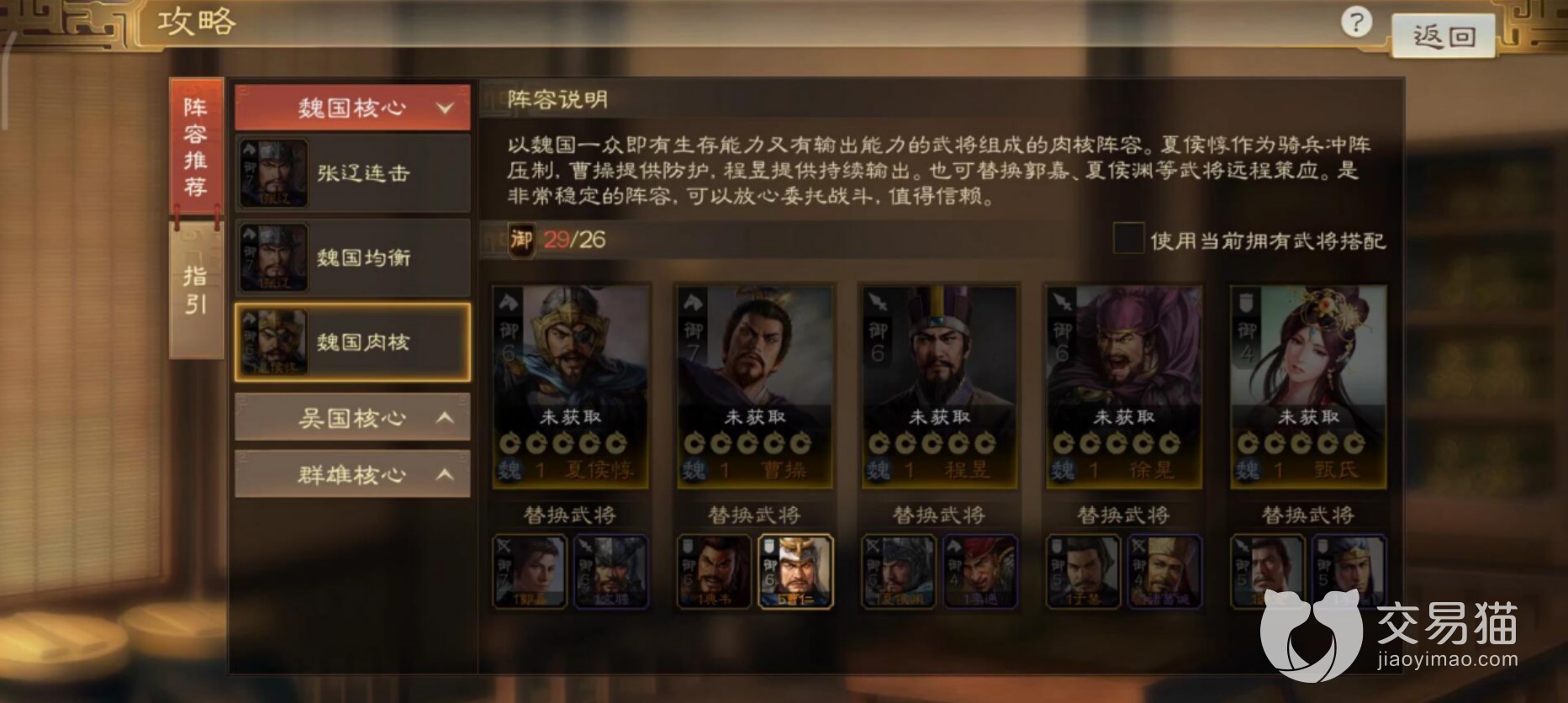至于阵容方面,可以让夏侯惇带着骑兵冲入敌阵充分承伤,甄氏单点奶让其苟住,徐晃提供援护,后排程昱提供远程输出,曹操来加buff,没有曹操也可以用曹仁。这套阵容的坦度很足,输出也够,只是没那么暴力。