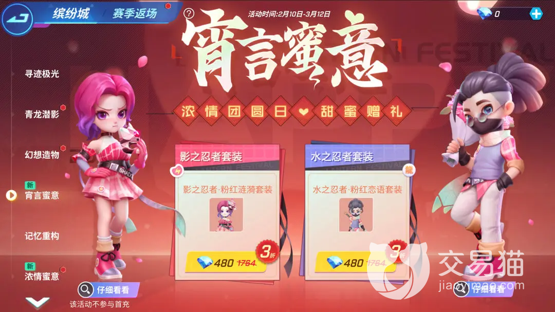 既然是新活动,自然少不了新的装扮。这次的装扮将会在2月10号的时候上线,是一套情侣装。同时在那个时候还会有新的礼物产出,那是一只小兔子被放在星星罐中。各位可以将他送给自己的好友,以此来表明心意。另外商城中还会有上限一系列的折扣活动。各位有需要的可以去那里看看。
