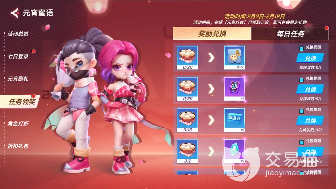 之后在元宵密语这个大型活动的里面,每日完成相关的任务就会获取到一碗汤圆,之后再“任务领奖”的界面里就可以使用一定数量的汤圆换取相应的物品。
