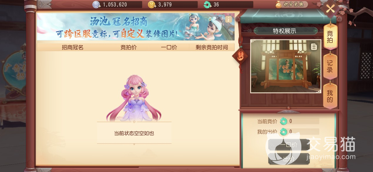 另外游戏中还有上线一款竞拍活动,各位只需要在这里通过竞拍获取到冠名权,之后就能够享受更多的特权。这个竞拍活动是跨区域进行的,各位如果在当前区服中没有获取到想要的东西就可以前往其他的区服继续进行。