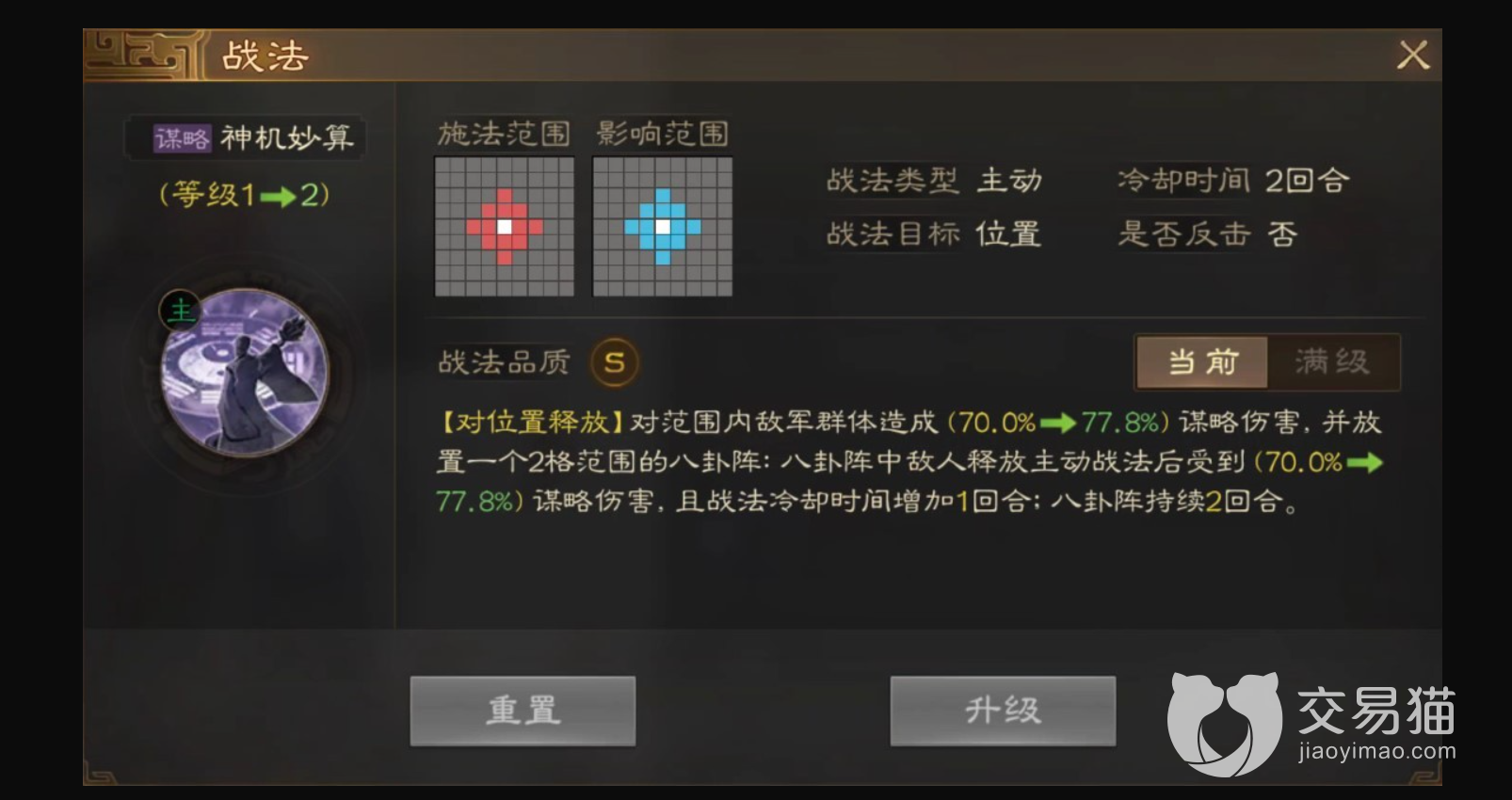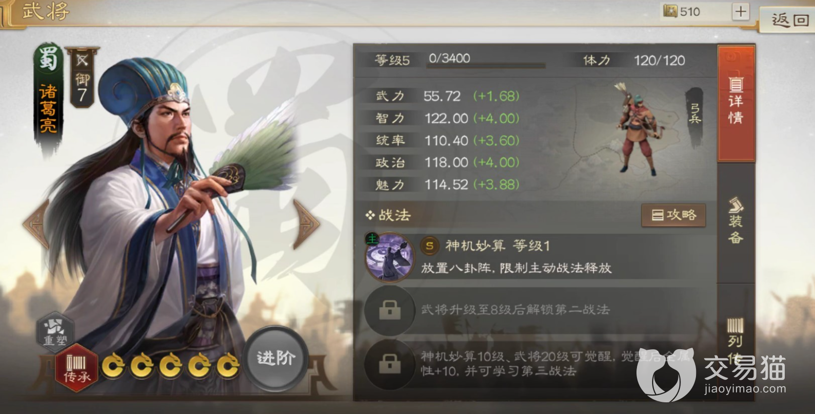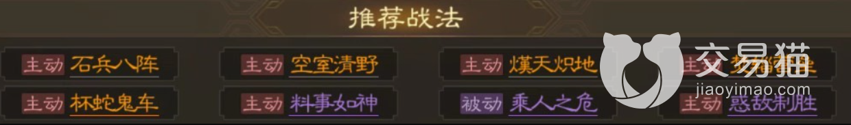 诸葛孔明这个角色自带战法,神机妙算,非常符合诸葛亮的人设,这个战法妙就妙在只要放出来,敌军就会不断的被反噬伤害,而被伤害之后,敌军的CD冷却时间就大大增加了,可以算作是存在于我军的开外挂了。