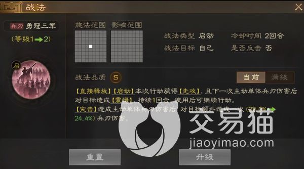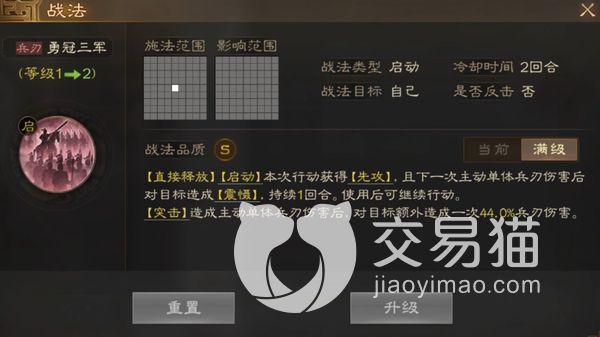 这个角色的勇冠三军技能可以在启动的时候该回合得到第一次攻击机会,并且还对该目标能造成震慑效果,并在下一次的主动攻击之后,还能对该目标再造成额外的伤害加成。