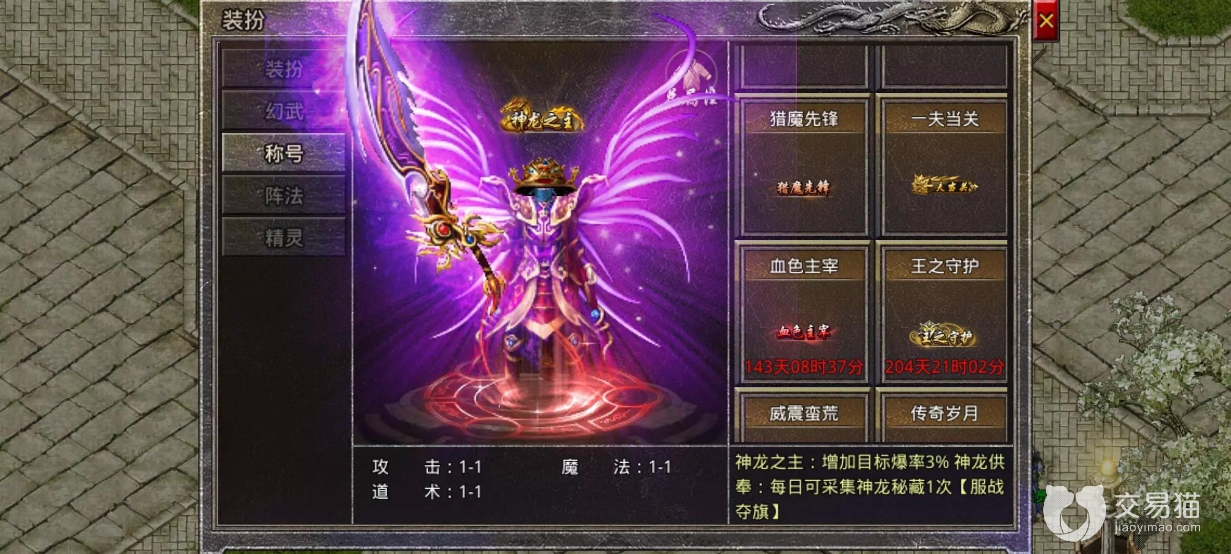 以上就是传奇账号交易平台哪个好的所有相关内容,除了原始传奇之外,其他类似于冰雪传奇的传奇相关手游作品都可以来交易猫看看有没有可以低价捡漏的账号,说不定就有氪金大佬急用钱将自己氪金万元的账号百元出售,快点击上方链接下载吧。
